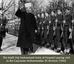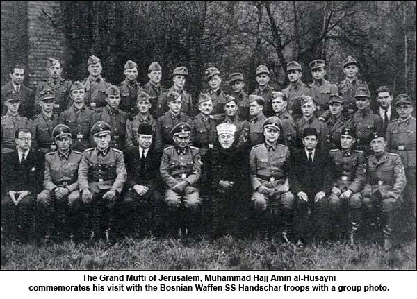 The Grand Mufti of Jerusalem and SS Reichsfuhrer Heinrich Himmler recruited two Waffen SS Mountain Divisions (44,000 men) for action on the Eastern Front — primarily to fight in Yugoslavia against the partisans there. The 13th Waffen SS Gebrigs Division “Handschar” (Sword) was composed of Croatian and Bosnian Muslims.