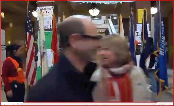 WI teachers/communists, using the War Memorial as their own personal billboard. Argue over respecting the men and women who DIED that this Memorial represents…