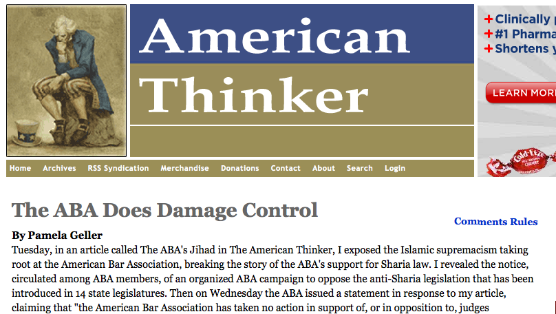 Pamela Geller, American Thinker: The ABA Does Damage Control