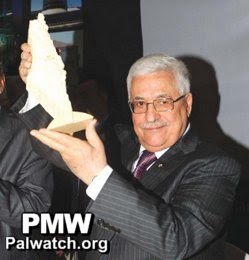 Note the map on the wall behind Mahmoud Abbas. It surely symbolises “the writing on the wall”. For it depicts Palestine as he wishes, indeed how he apparently ultimately intends, it to be: