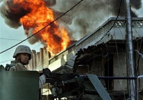 He tries to sleep but gets woken by mortars and helicopters all night long.