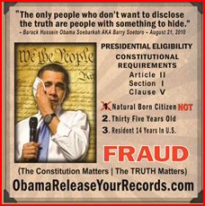 Not a Natural Born Citizen under the U.S. Constitution – “The only people who don’t want to disclose the truth are people with something to hide” Hussein Obama – August 21, 2010
