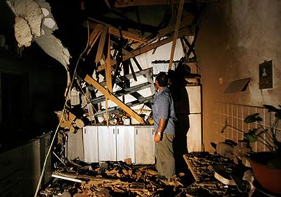 | The result of a previous Qassam rocket assault on an Israeli home. |