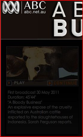 Next on Four Corners: A Bloody Business. An explosive exposé of the cruelty inflicted on Australian cattle exported to the slaughterhouses of Indonesia.