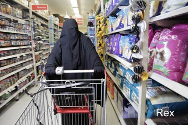 A little Muslim kid, crying, can’t find his mother in the supermarket.