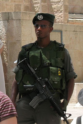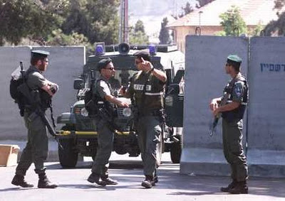 | Border Police doing what they do at a security checkpoint |