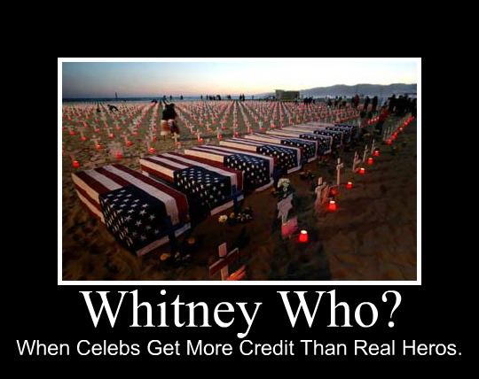 Our Amy said, “I think it’s disgusting that so much media coverage, all aspects, are all about this drunken, drug addicted person and nothing happens, day after day, in reference to our boys in the military and how much they deserve much better recognition for their service to US AND THEIR COUNTRY. We heard that her funeral is going to be on television. I can’t believe it. Has this country gone mad???