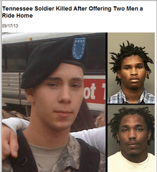 A white man, U.S Soldier, is kind and loving towards two black men and gives them a ride. They return the favor by shooting and kill him.