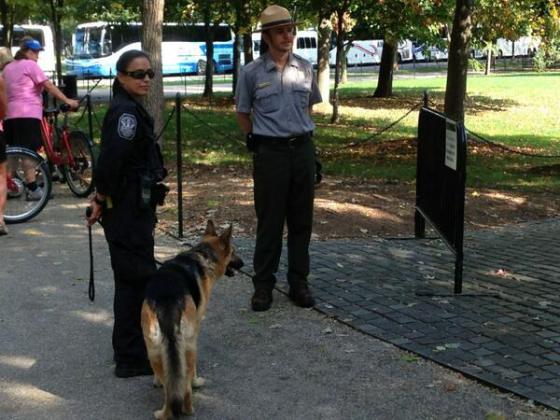 Via Gateway Pundit: ”Unbelievable! Barack Obama brought out the German Shepherds today to threaten US veterans at the Vietnam Memorial.”