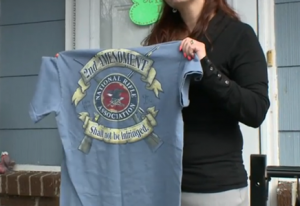 “Just by wearing the shirt, yes it has guns on it, but it doesn’t mean you are for any kind of violence,” Kim Kinney said.