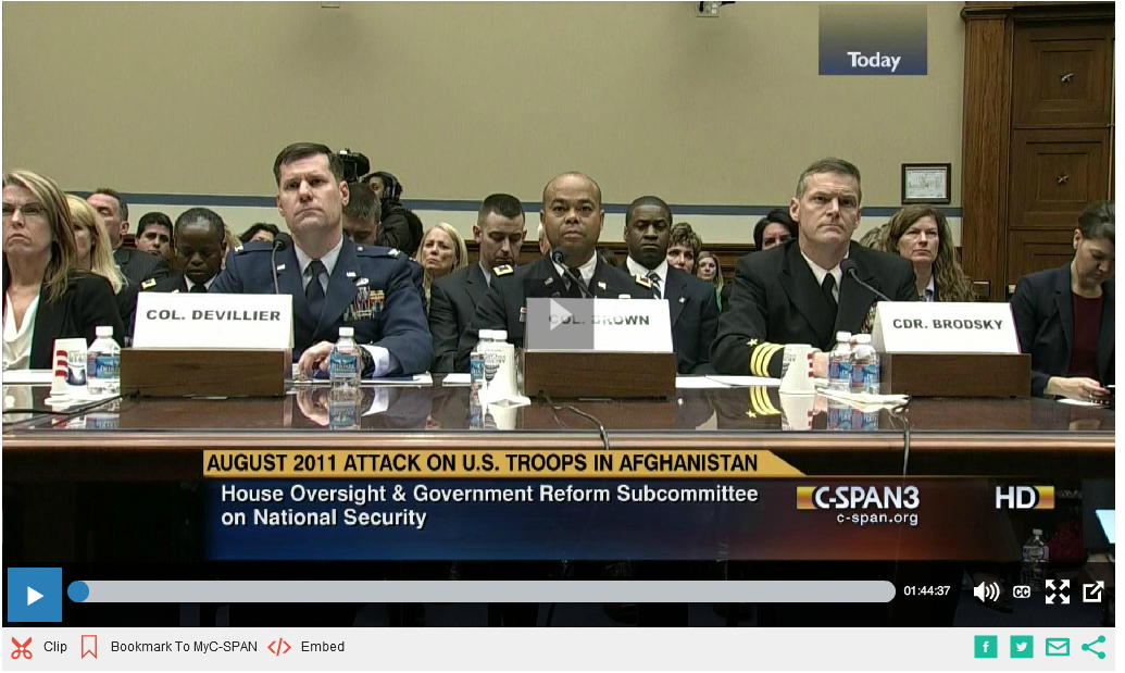 Defense Department officials and military leaders testified at a hearing on the investigation of the August 20111 death of 30 U.S. servicemen in Afghanistan after the Taliban fired a rocket on their helicopter.