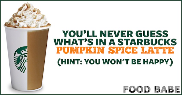 But first, I want to mention that I get riled up when restaurants refuse to disclose their ingredients, because we have the right to know what we are eating and drinking. I’ve tried for years to get ingredient information from Starbucks and it’s been a bit frustrating to say the least. If you’ve ever tried emailing their customer service for ingredients you probably know what I’m talking about. This week, we emailed them asking for the complete list of ingredients in the Pumpkin Spice Latte and this was their response: “The Pumpkin Spice Latte is of pumpkin and traditional fall spice flavors combined with espresso and steamed milk, topped with whipped cream and pumpkin pie spice. If you ever have any questions or concerns in the future, please don’t hesitate to get in touch”. After several more emails back and forth, they were still refusing to share the ingredients: READ MORE: http://worldtruth.tv/youll-never-guess-whats-in-a-starbucks-pumpkin-spice-latte/