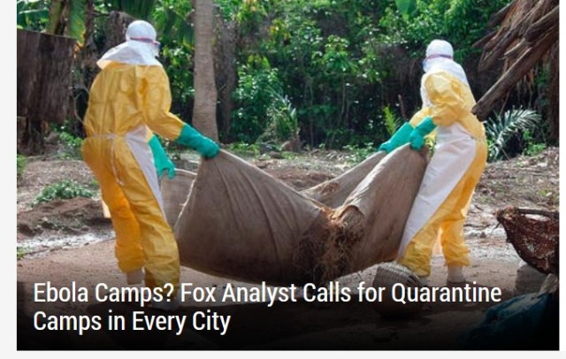 (Infowars) – Fox News, always ahead of the curve on panicking the general public into giving up all their rights, aired programming Monday during which an analyst openly called for quarantine camps to be set up all over the country to house those with Ebola like symptoms.