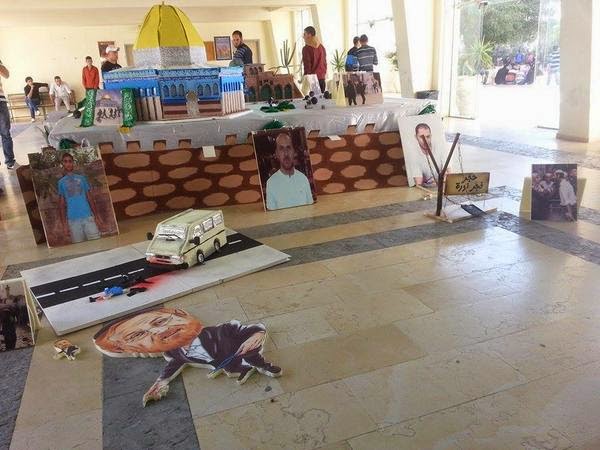 These are items created for an exhibition by Palestinian students at Al Quds University in Jerusalem. The president of the university is the well-known ‘moderate’, Sari Nusseibeh. Note the cutout of Yehuda Glick in the foreground.