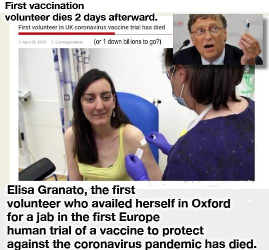 First vaccination volunteer dies 2 days afterward. Gee thanks, Bill Gates. Next time, let’s use you or one of your children.