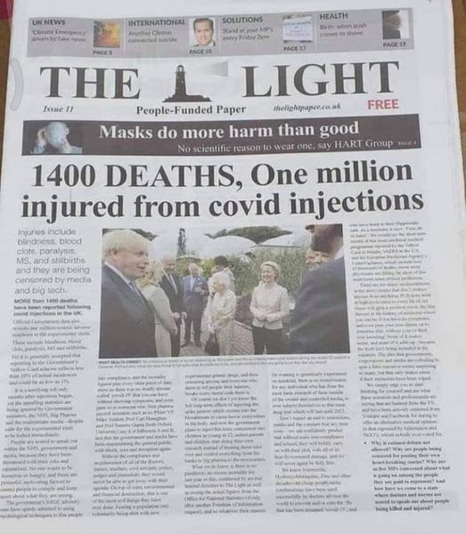 UK: “The Light” Newspaper, FRONT PAGE: “1,400 DEATHS, 1 MILLION Injured By #COVID19 #VACCINE“